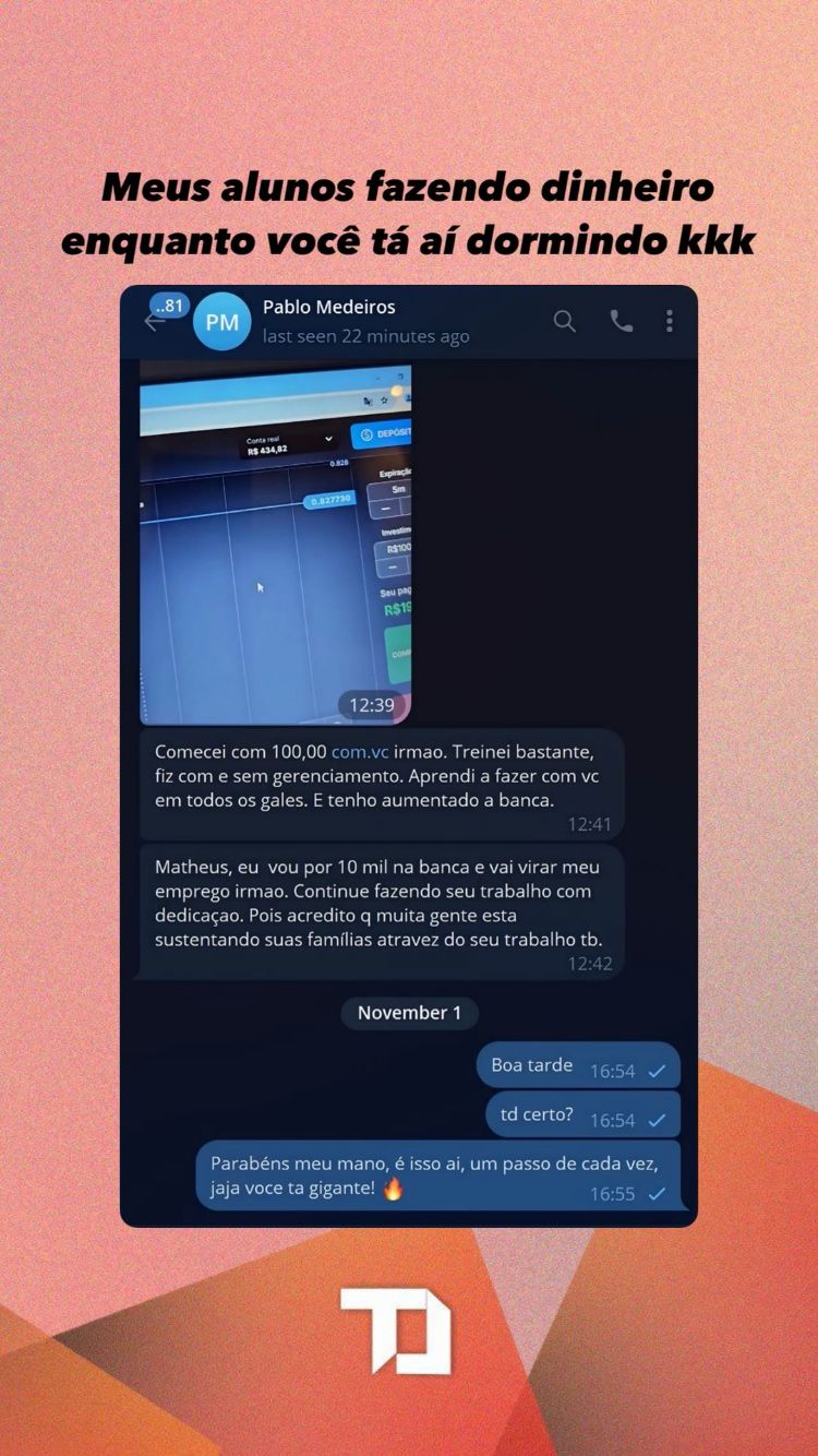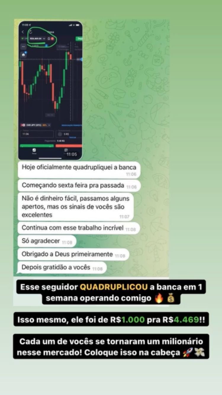 Mas com coragem, foco e visão — cheguei até aqui. Já são 6 anos vivendo de mercado, operando opções binárias e cripto com alta performance e resultado real.